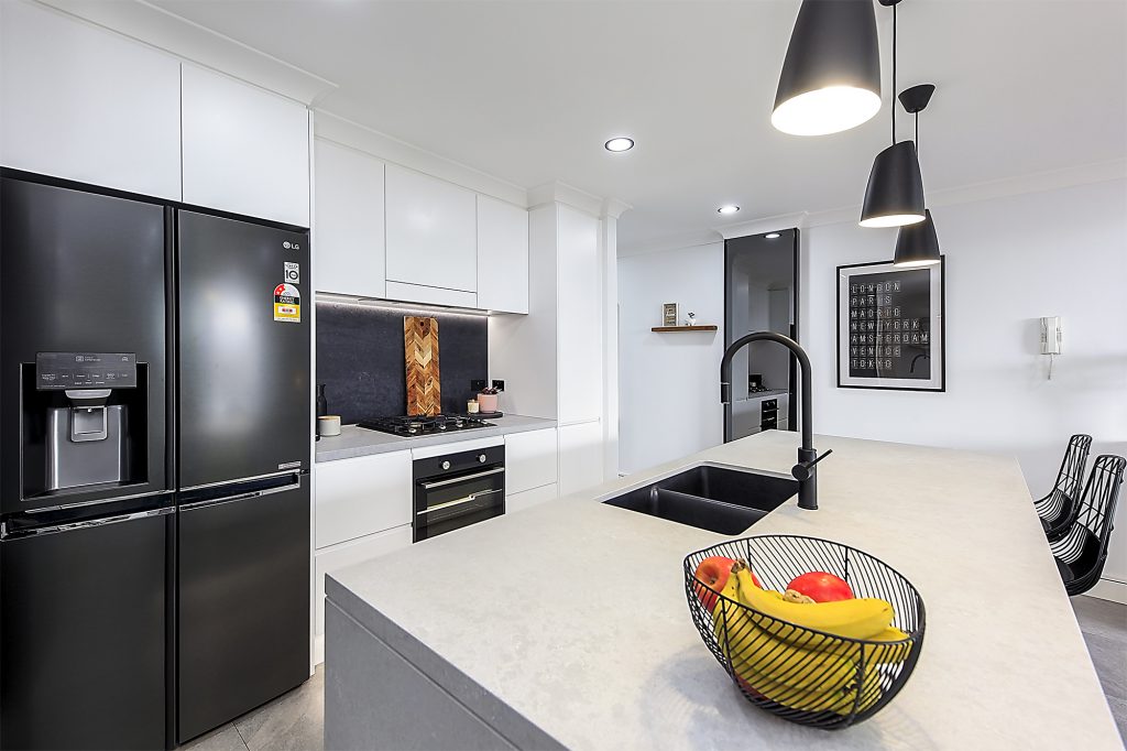 This huge transformation included a complete overhaul of the kitchen, living, dining, balcony, bathrooms and laundry areas.