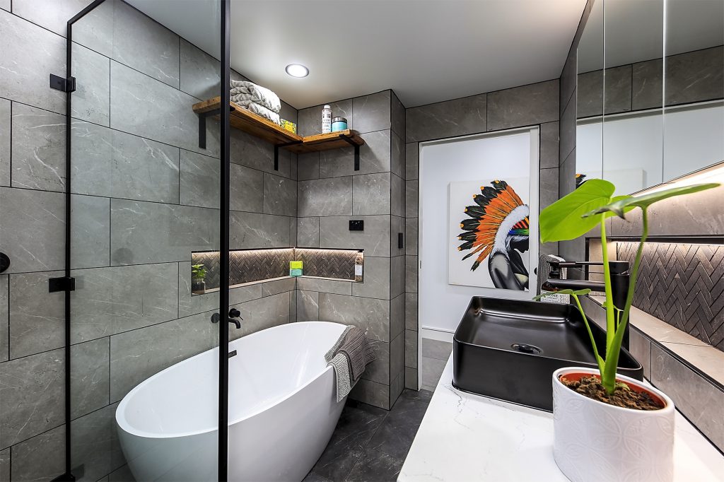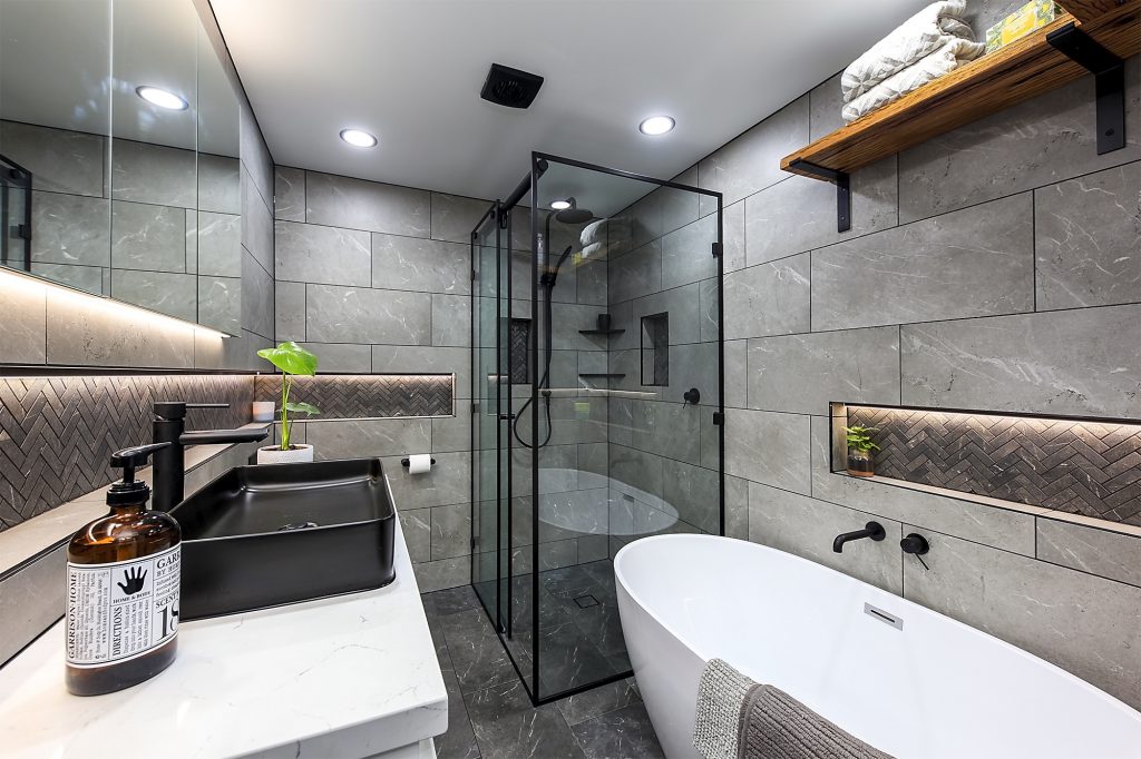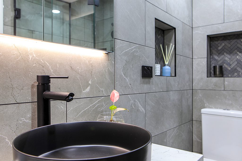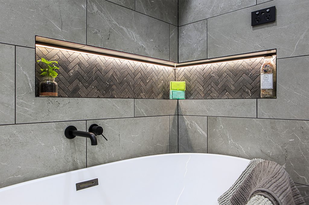 With bespoke timber shelving, bathroom niches and a custom-made coffee table utilising the splash back off-cuts, this renovation is definitely a masterpiece!