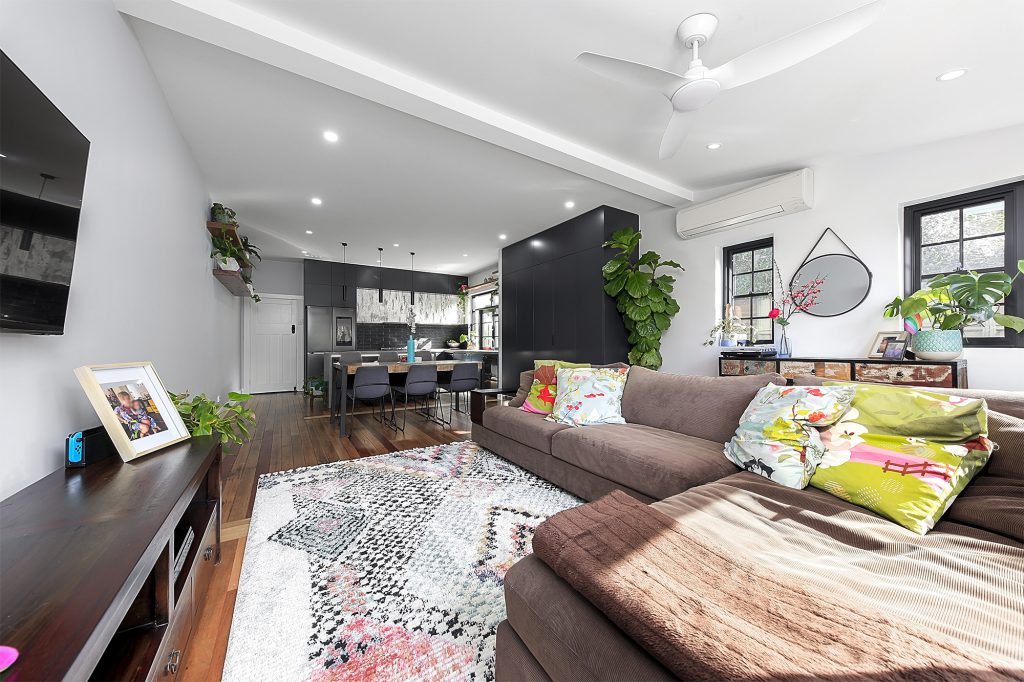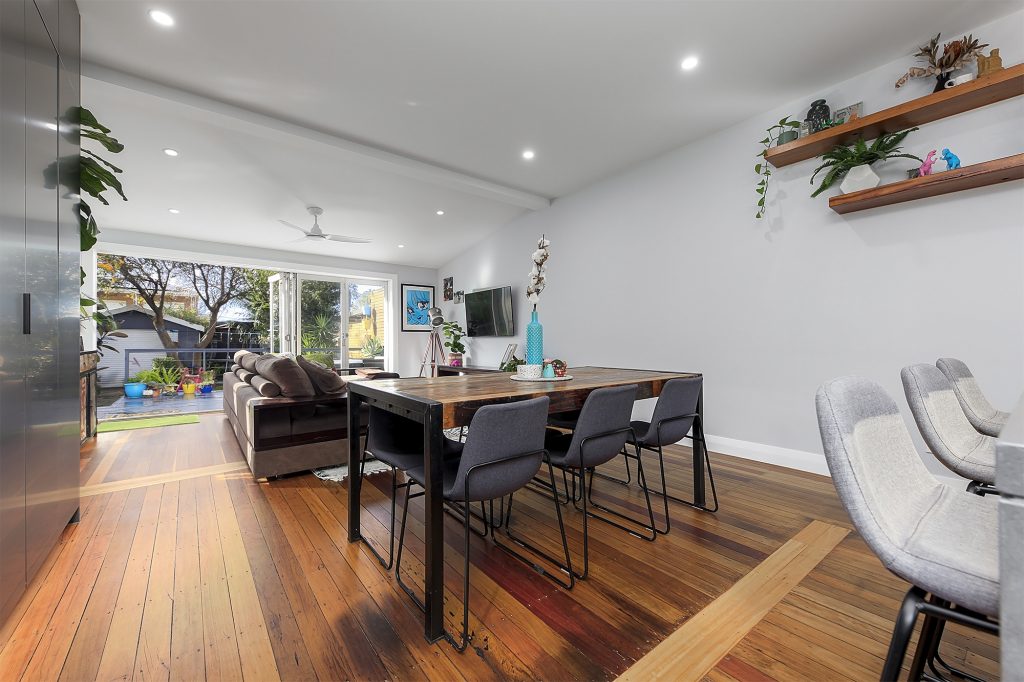 This Campsie renovation consisted of removing two large dividing walls making the rear section open plan living with combined kitchen living and dining area.