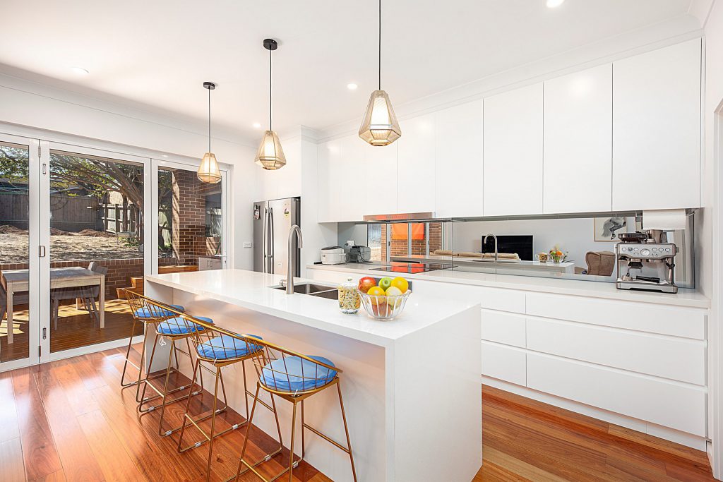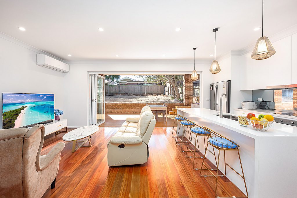 The existing dwelling was very closed off with many walls. After extensive demolition, we accomplished a large open plan living area with a new, very modern, high-end kitchen.