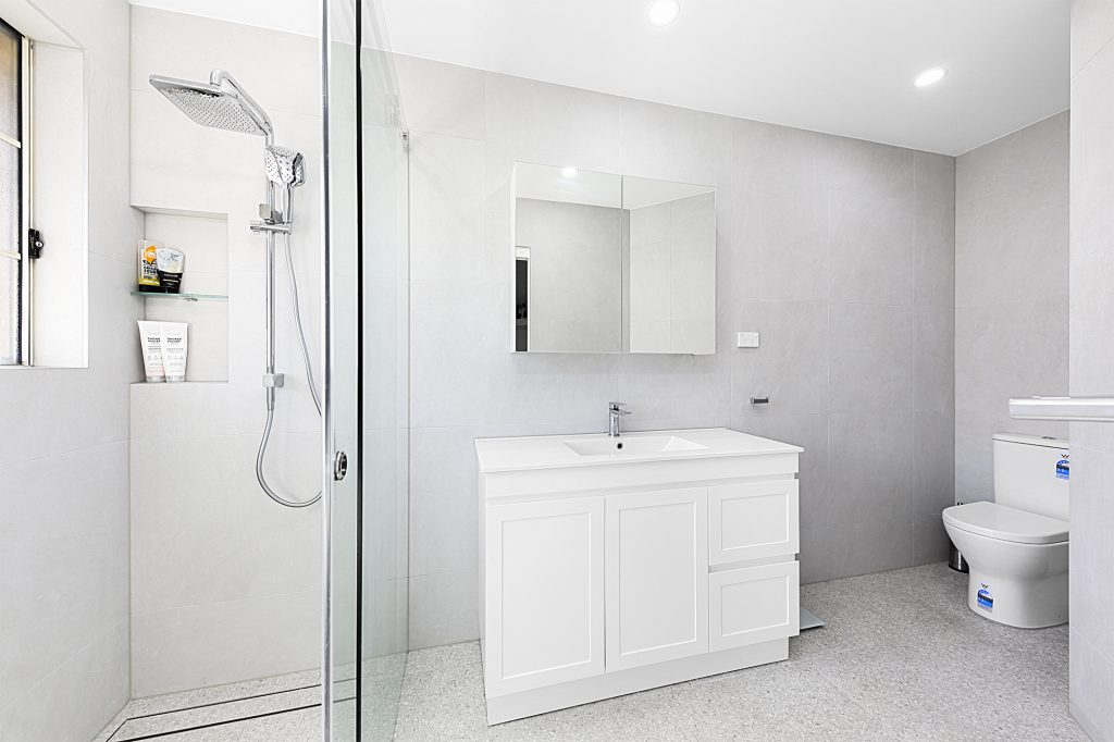 This Mortdale project consisted of double storey dwelling renovation works. Ground floor new open plan kitchen, bathroom, painting, gyprock and new timber flooring throughout. First floor consisted of new main bathroom, new ensuite, painting and new flooring to hallway and stairs. New downlights throughout dwelling. This newly renovated home has had a fresh makeover and looks amazing.