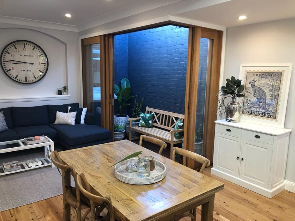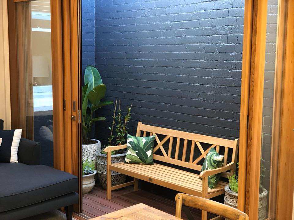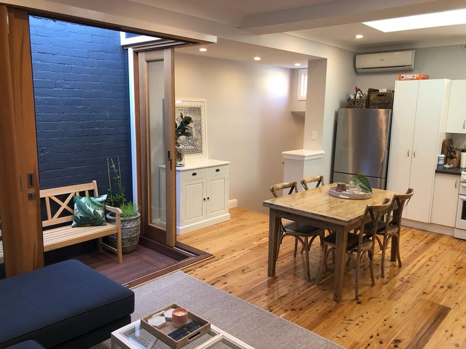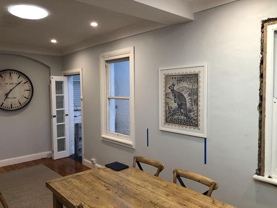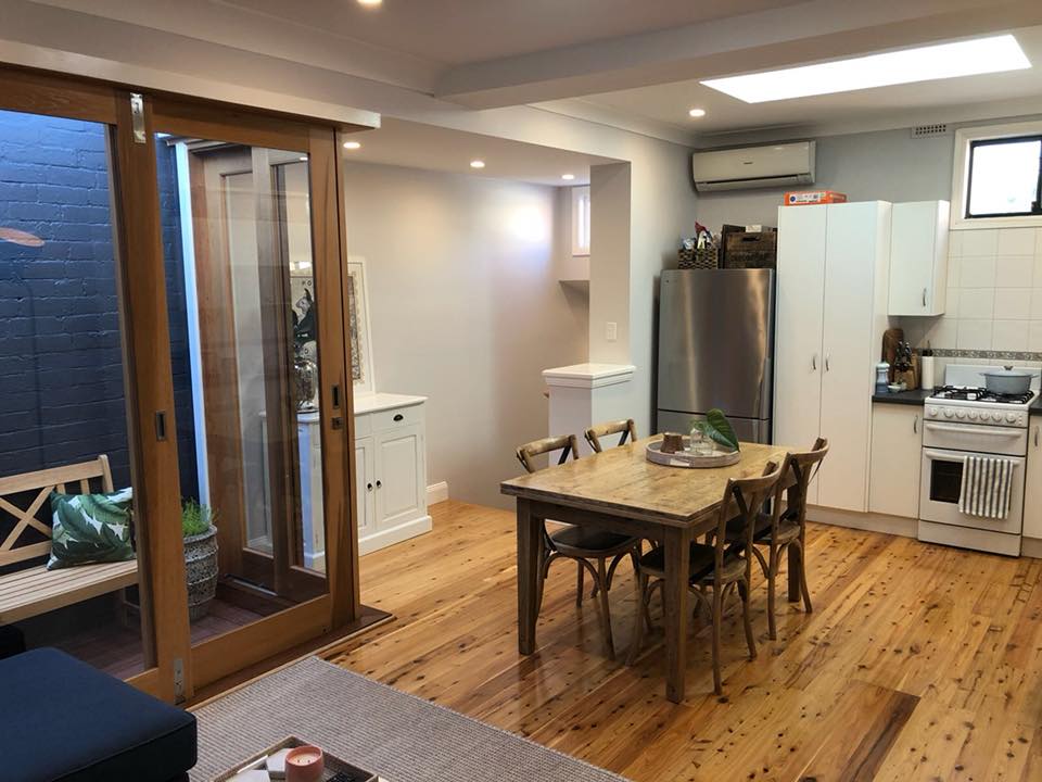 Newtown renovation internal finishes involved enlarging living space area and constructing new stairs to lower level bathroom and new outdoor deck area. Works consisted of demolition, gyprock, electrical, flooring and painting.