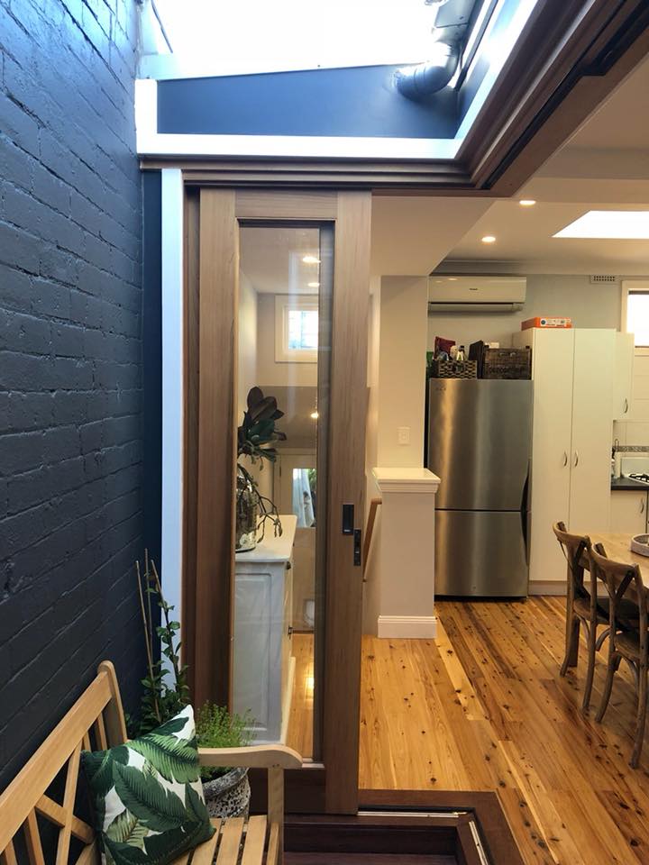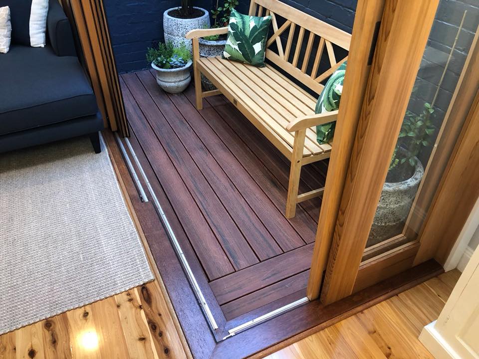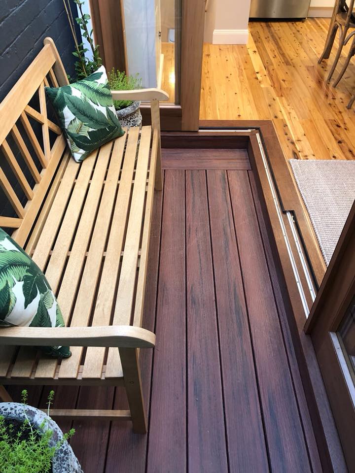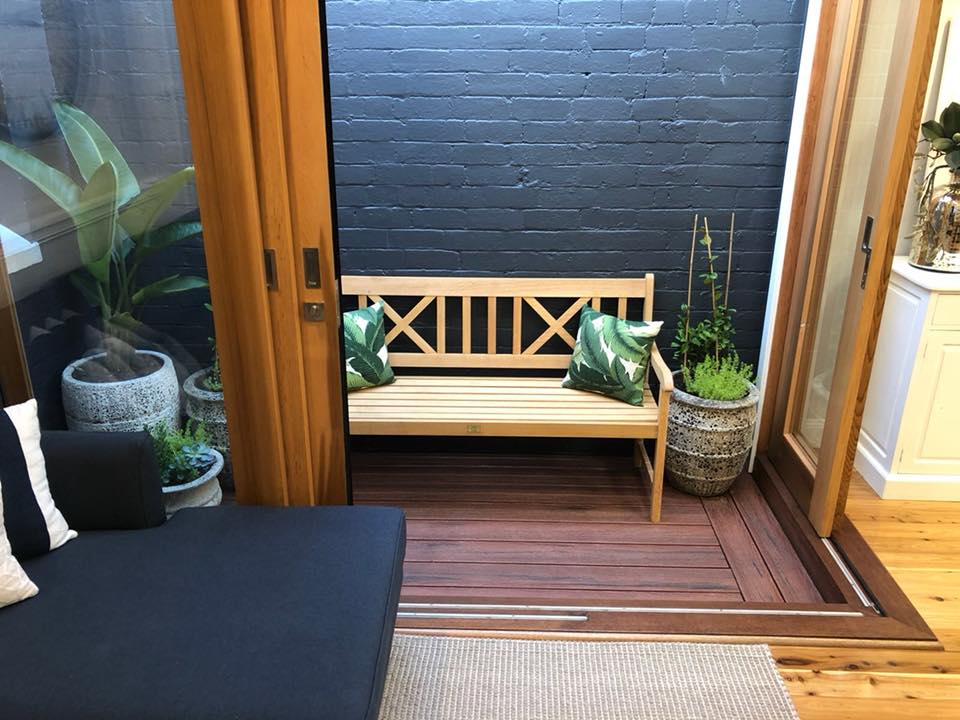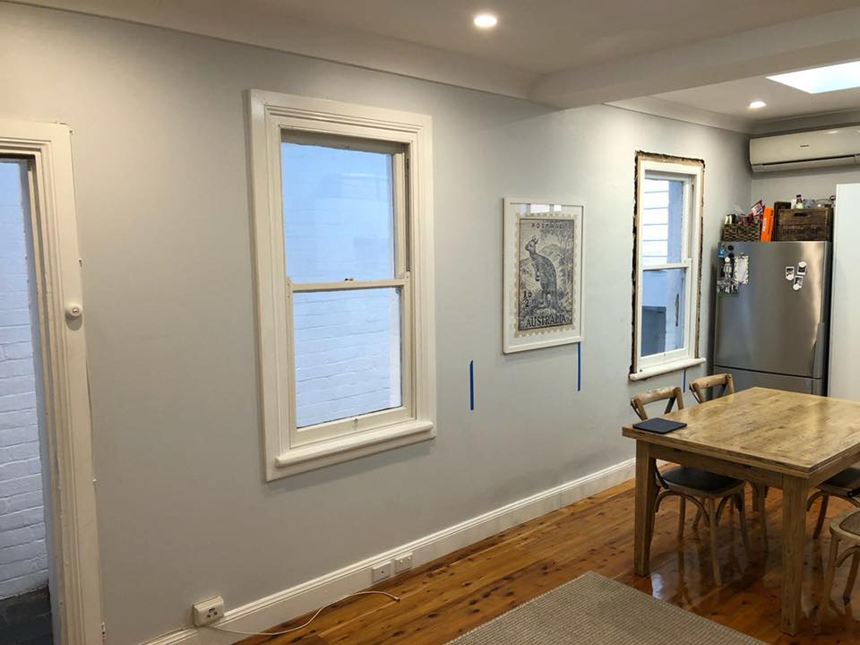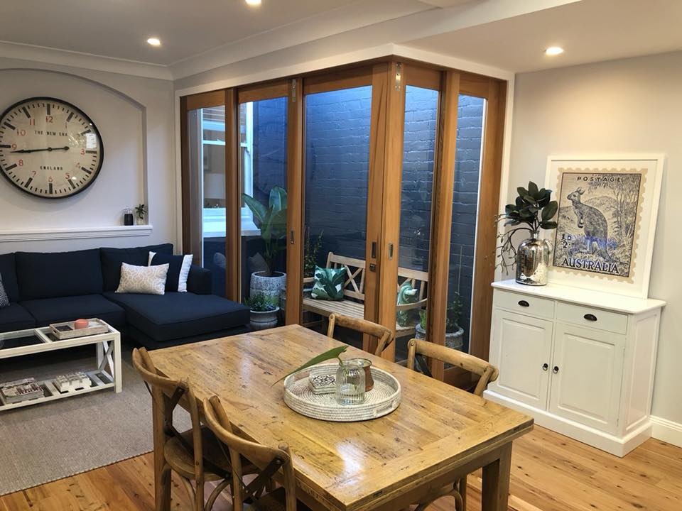 Newtown renovation internal finishes involved enlarging living space area and constructing new stairs to lower level bathroom and new outdoor deck area. Works consisted of demolition, gyprock, electrical, flooring and painting.