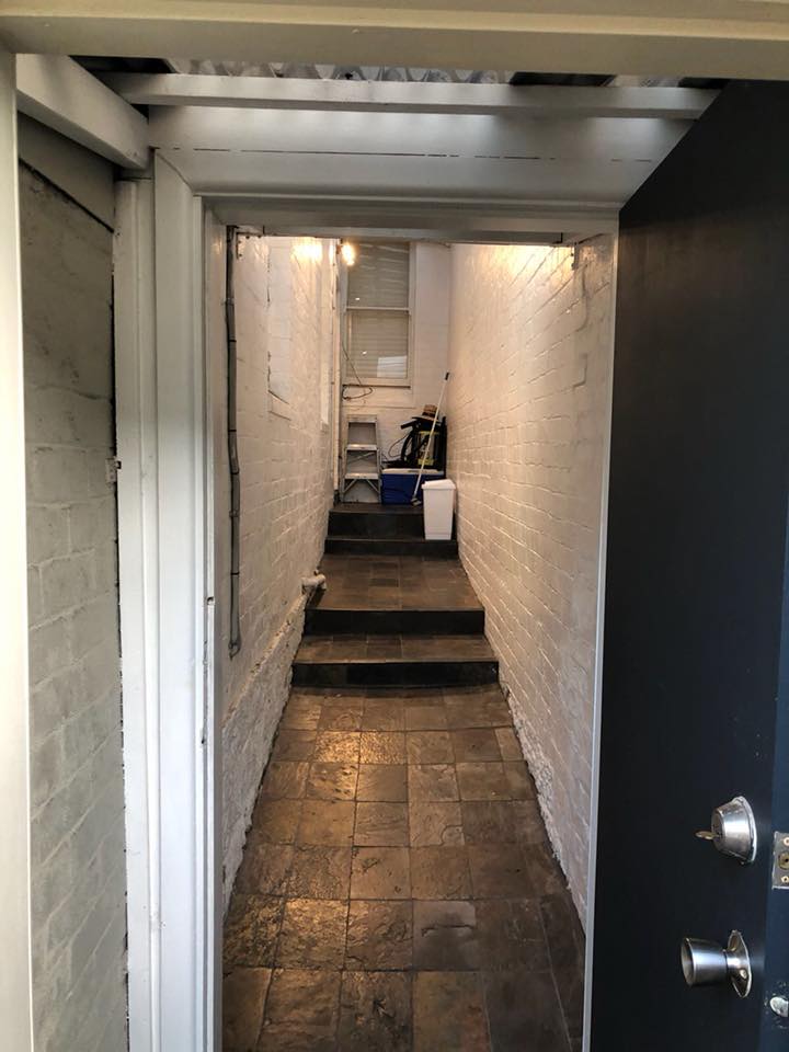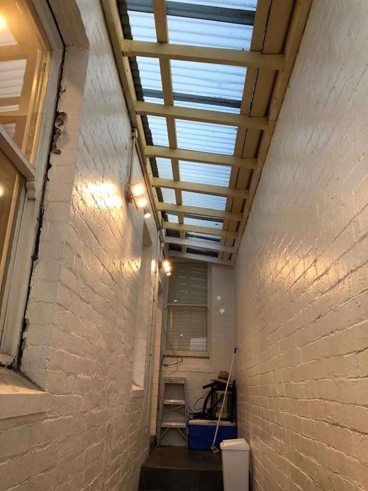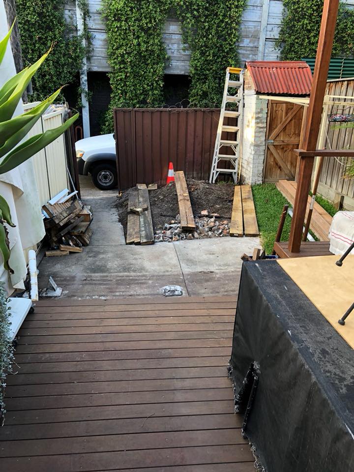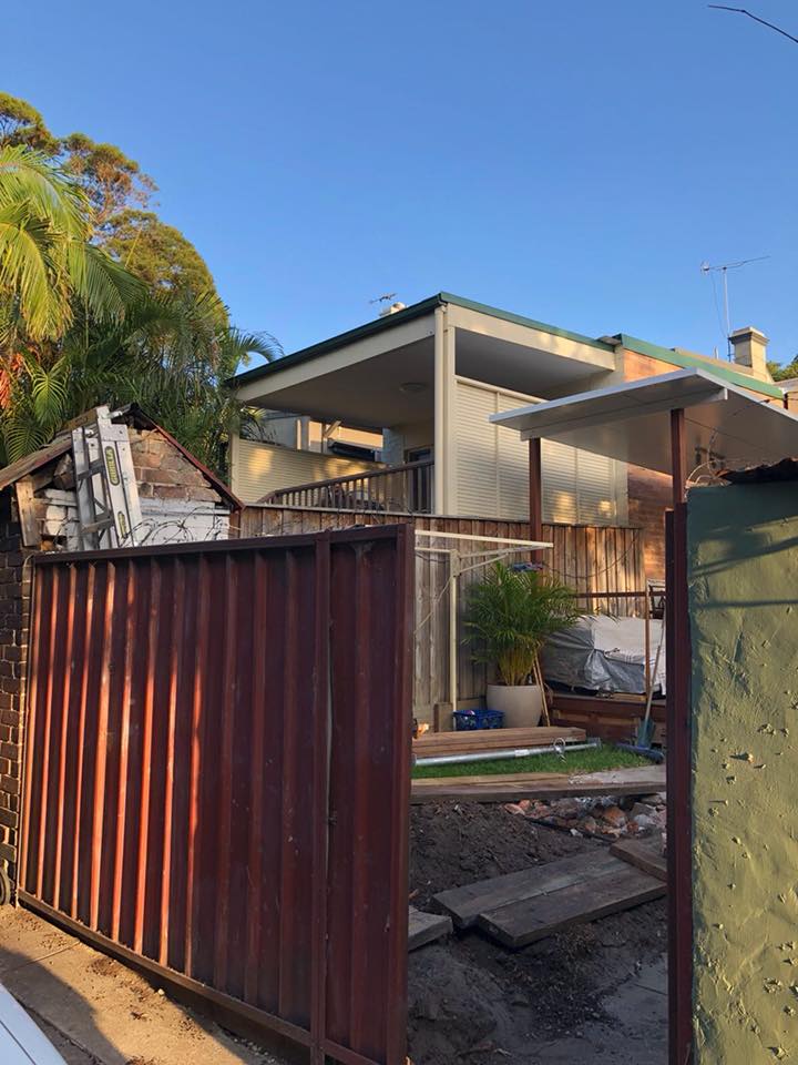 Outdoor works consisted of adding a car space to the rear dwelling. Works consisted of demolition, plumbing, concrete placement, electrical, brickwork and steel works. Car space also complete with new European slim line style motorized garage door with surrounding steel frame for structural support.