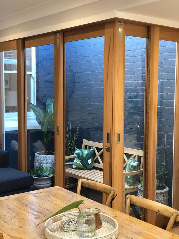 A major structural wall was demolished and installation of beam support making a larger living space area. Main feature in this new living area is the new sliding stacking cedar doors overlooking the deck area. This was a challenge to achieve a corner door which opens up eliminating no post support maximizing open area.