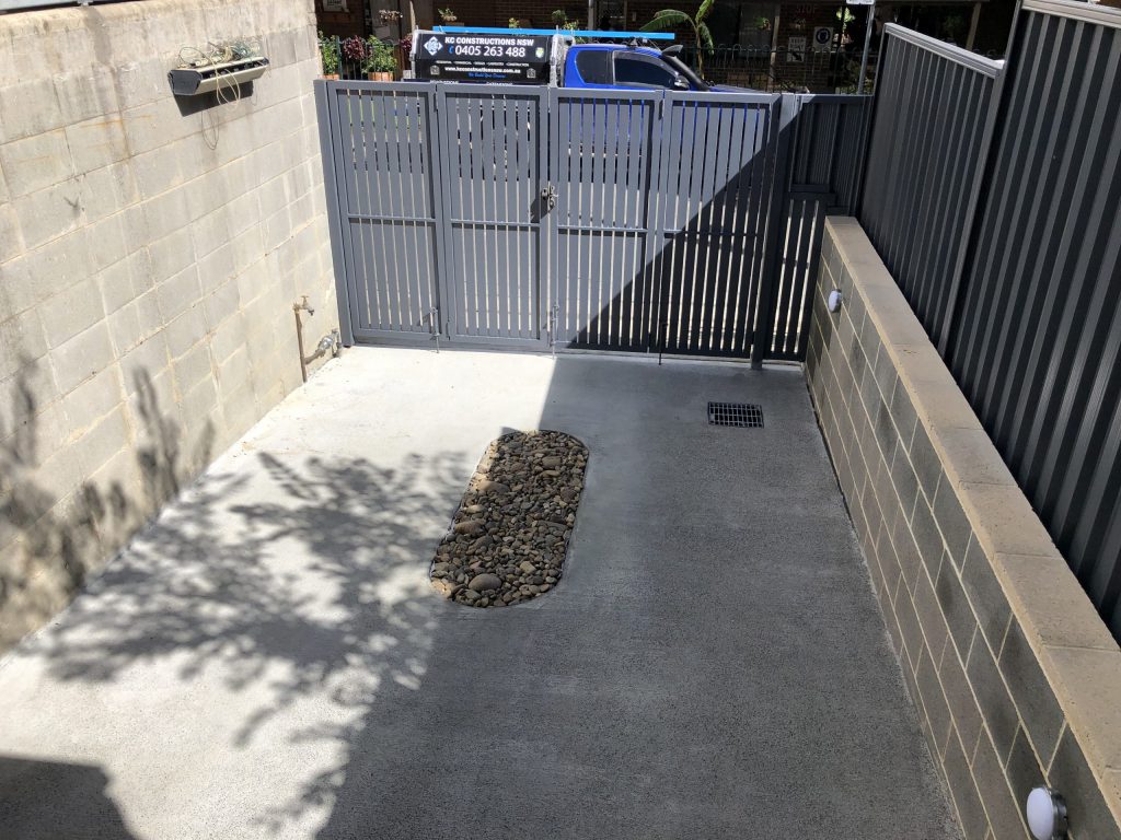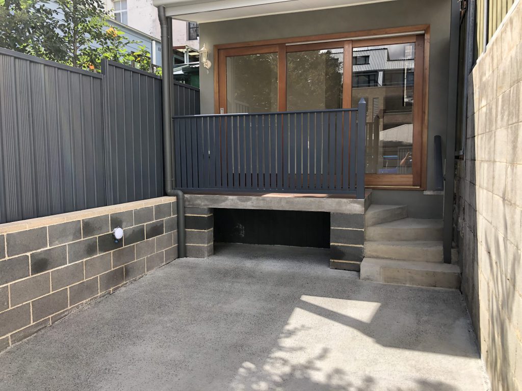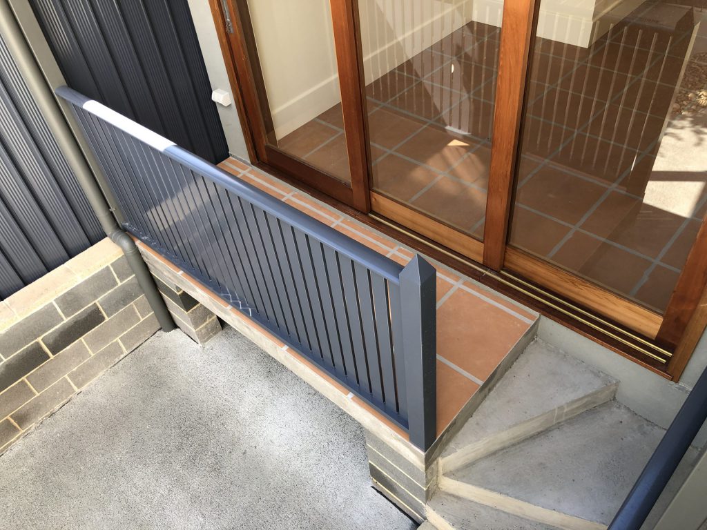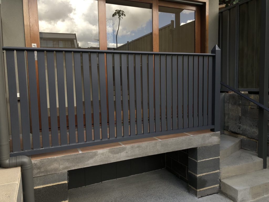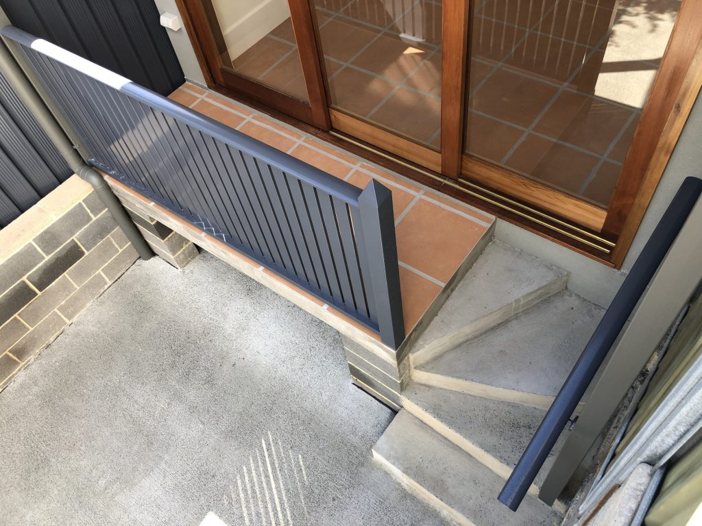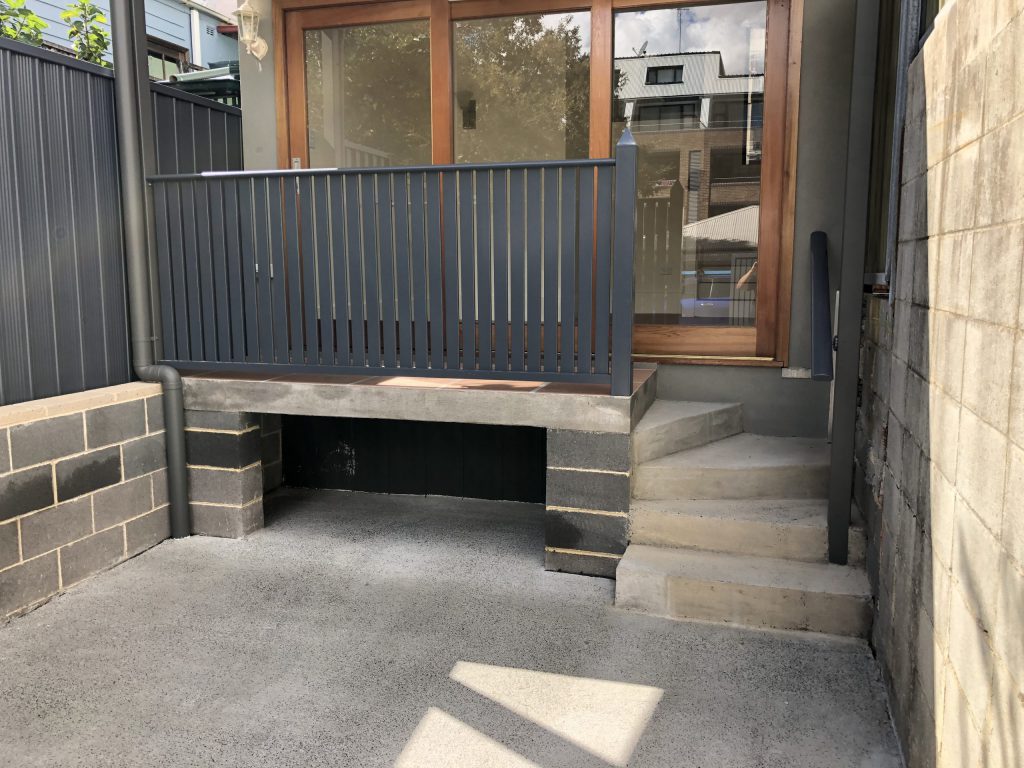 Rear dwelling aluminium balustrade complete with reinforced concrete slab for car space.