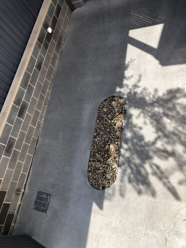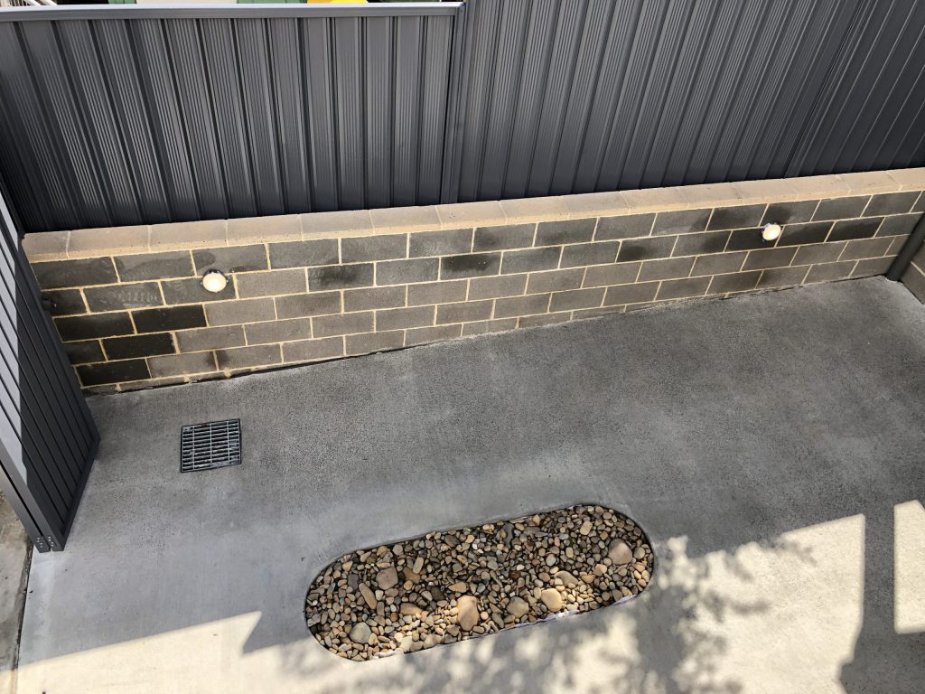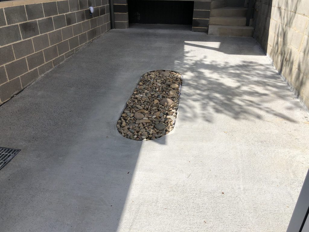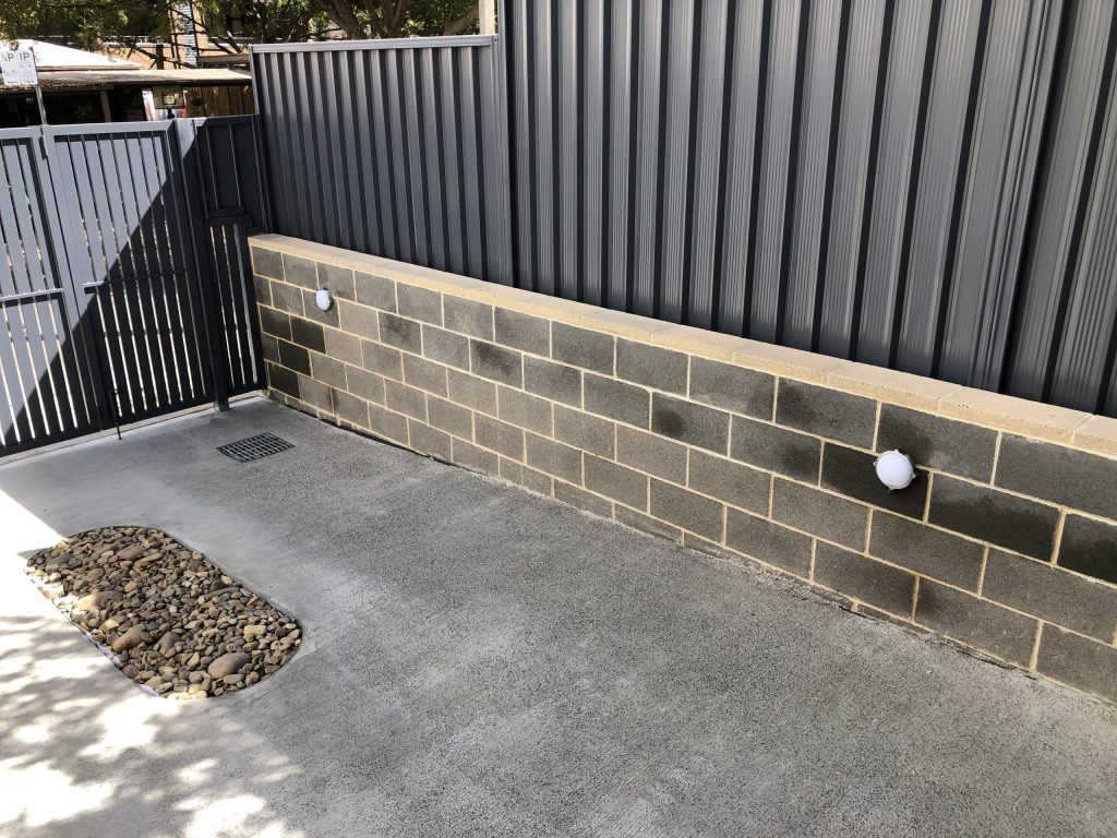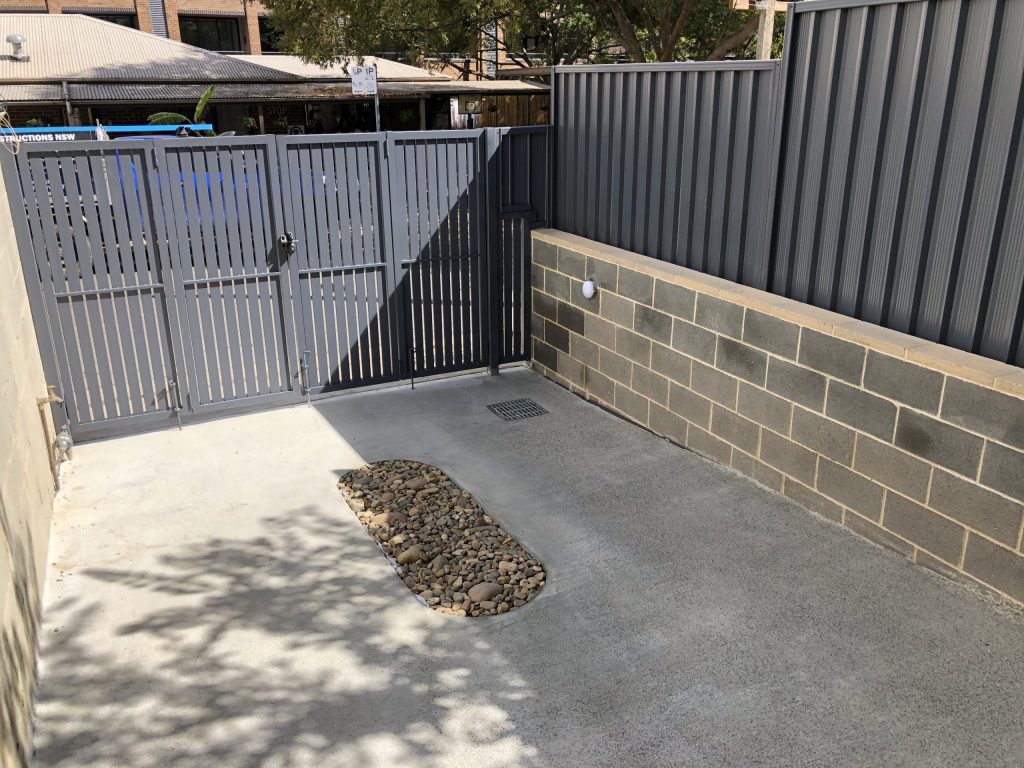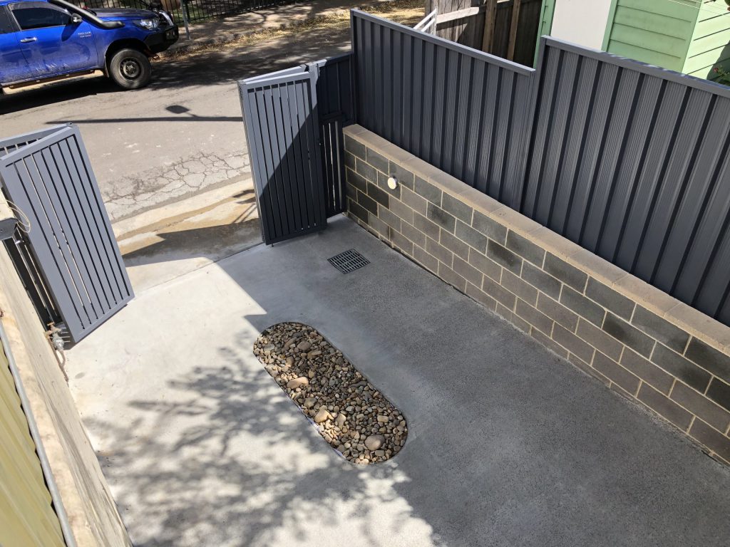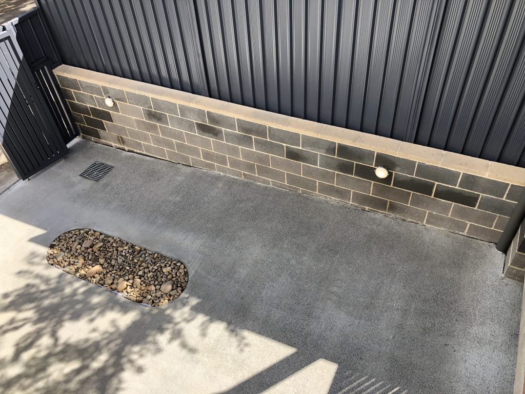 Rear dwelling aluminium balustrade complete with reinforced concrete slab for car space.